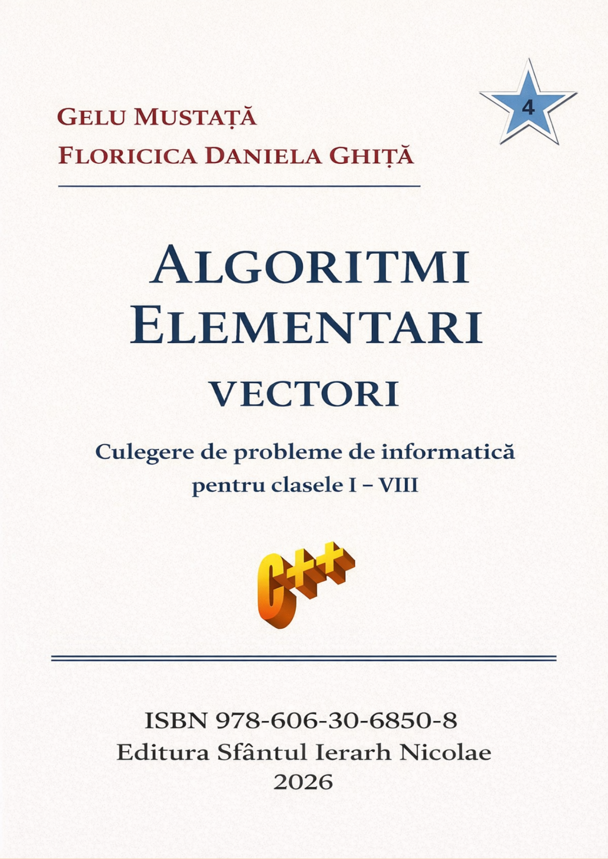 Culegerea este dedicată elevilor din ciclul gimnazial (și nu numai …), care vor să învețe, să programeze în limbajul C++. Acest al patrulea volum, oferă 130 de probleme, a căror algoritm de rezolvare presupune folosirea structurilor de date de tip vectori. Toate problemele sunt rezolvate în limbajul C++ cu ajutorul mediului de dezvoltare integrat (IDE) Code::Blocks 16.01.